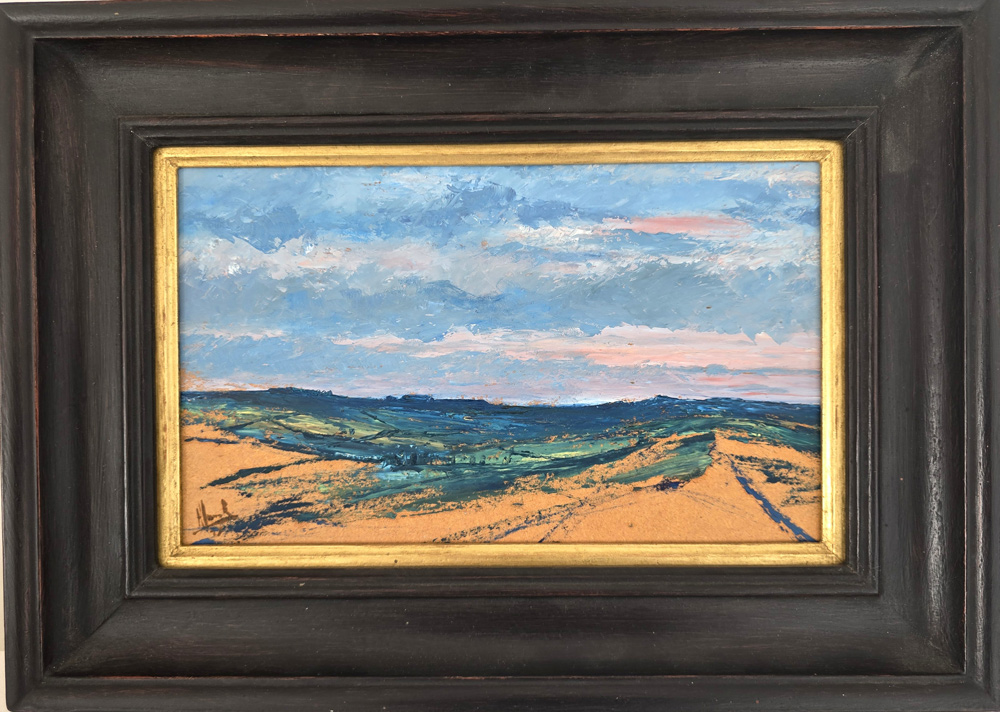 After a decade in the army, Murray Hammick sought to leave the defence world behind, venturing into work as an estate agent and magazine editor. Yet the pull of the industry proved inescapable, and he spent the remainder of his civilian career within its orbit. Today, he turns his focus to a long-held passion: painting. His work draws inspiration from the seascapes and moorlands of North Devon, infused with a love of light, space, and atmosphere. From expansive coastal views with a ‘faint whiff of shipping’ to intimate studies of Exmoor’s rolling terrain, Hammick’s paintings capture a sense of place that is both personal and timeless.