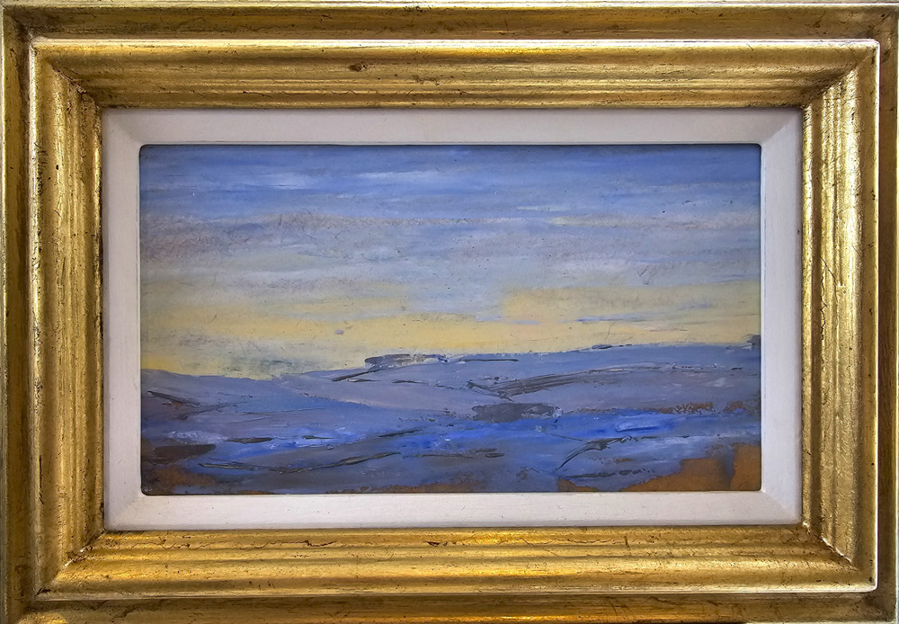Working mainly in oils on unprepared MDF board – often applying paint with a palette-knife – Hammick builds up layers of colour with a confident, intuitive touch. He embraces the unpredictable, allowing each piece to evolve naturally. Many of his paintings are small in scale, designed to invite private contemplation, offering what the artist describes as ‘straightforward attempts to encompass broad horizons in small frames.’