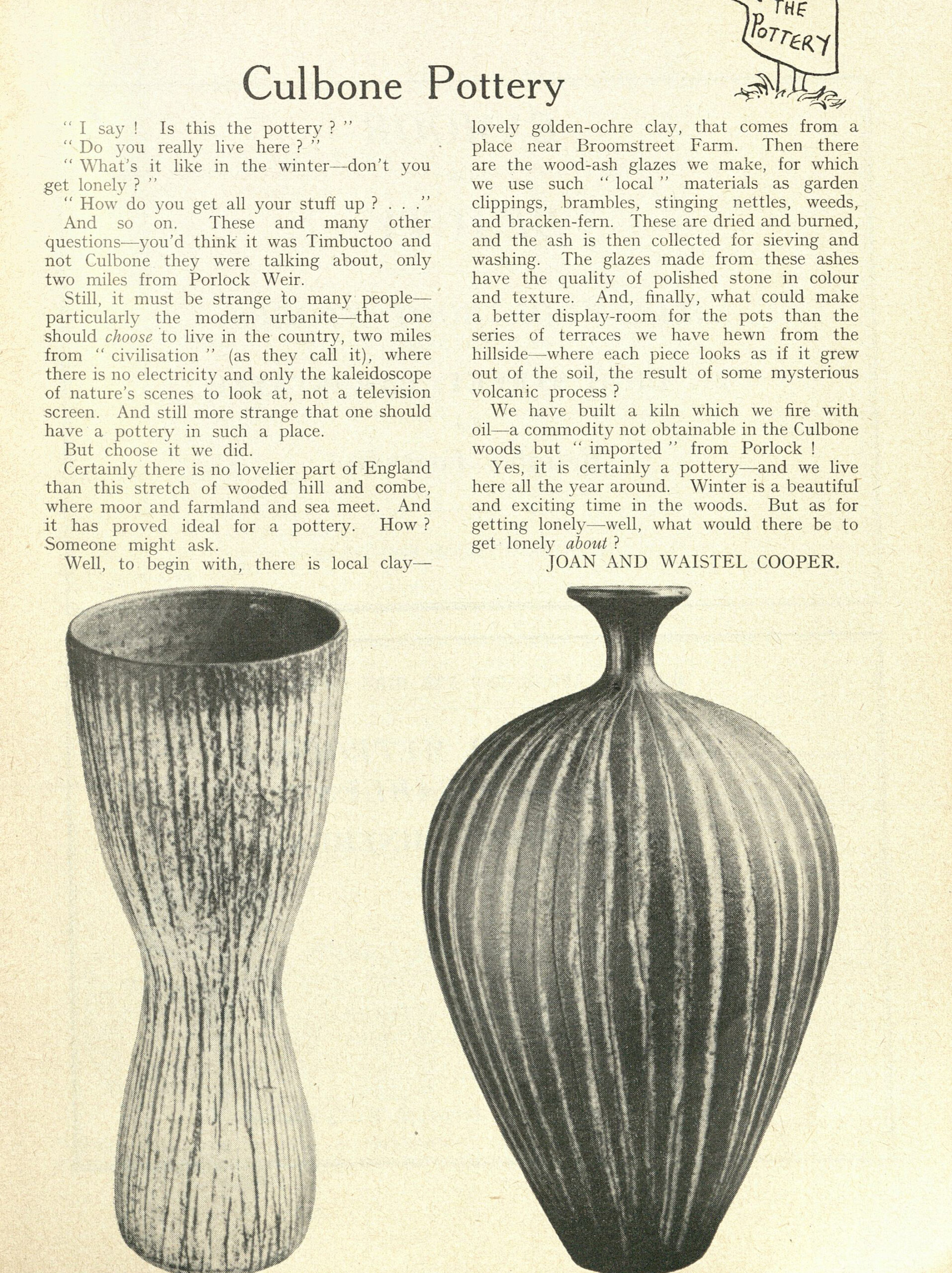 In 1956, Waistel Cooper and his wife Joan settled in Culbone, a remote valley on Exmoor overlooking England’s smallest parish church. Their home, Keeper’s Lodge, was tucked deep into ancient woodland, far removed from city life and the commercial art world. For nearly three decades this secluded landscape would shape the rhythm of Cooper’s working life, and profoundly influence the character of his ceramics.