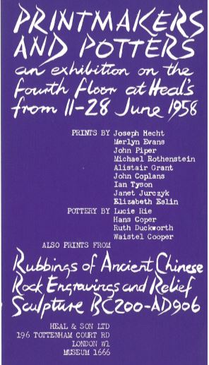 Waistel Cooper, Lucie Rie, Hans Coper, Ruth Duckworth exhibition at Heal & Son Mansard Gallery, 1958
