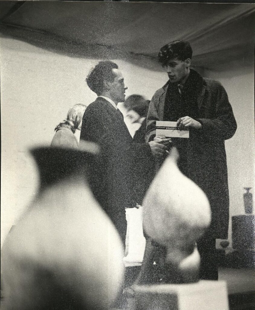 Waistel Cooper in conversation with playwright Tom Stoppard at Waistel’s Arnolfini Gallery exhibition in 1962